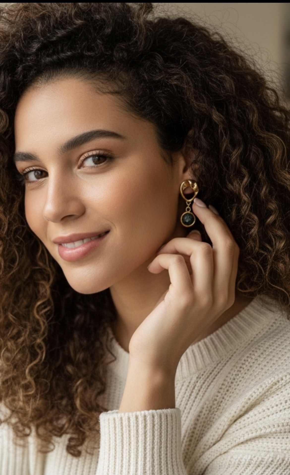 Brinco dourado com pingente em cristal.