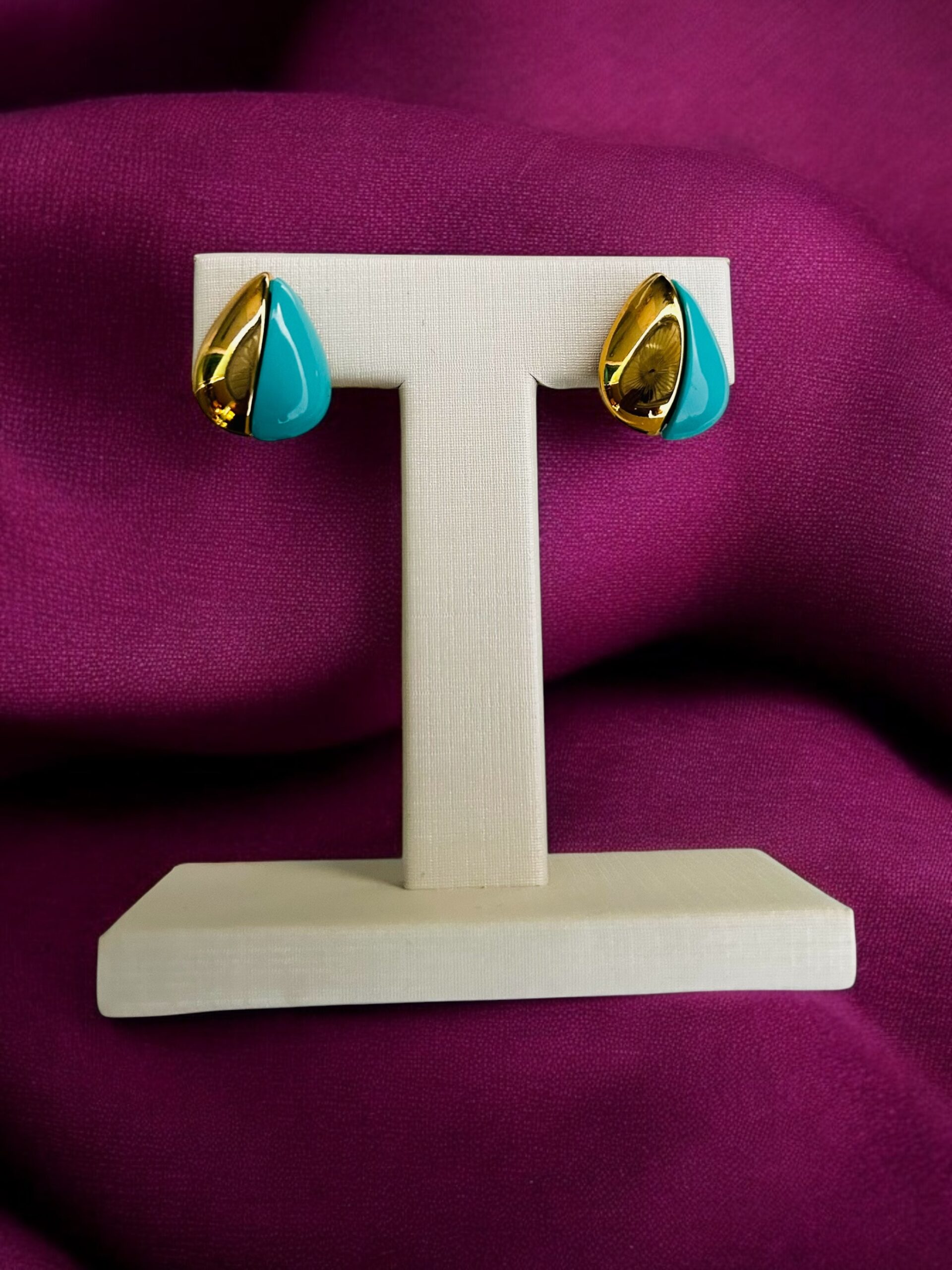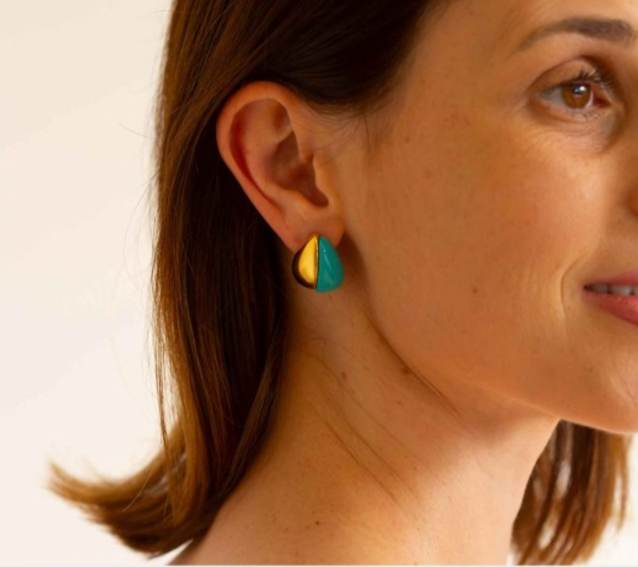 Brinco dourado e azul. tendência verão 2025.