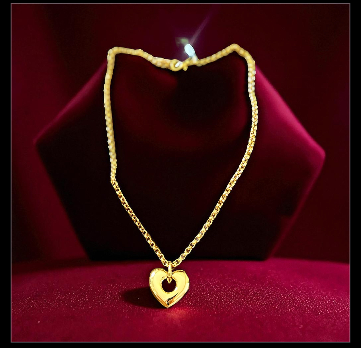Colar curto dourado com pingente de coração.