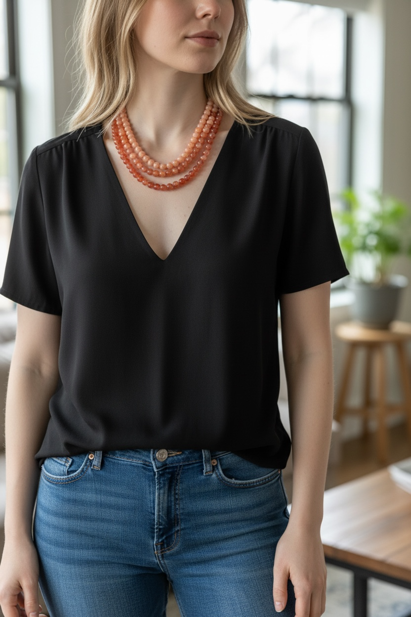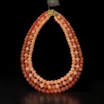 Colar triplo curto, esferas de vidro rosê (2 tons)