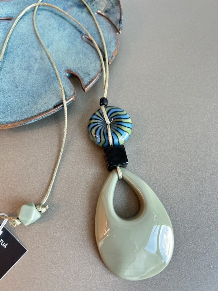Colar longo em fio encerado e resina.