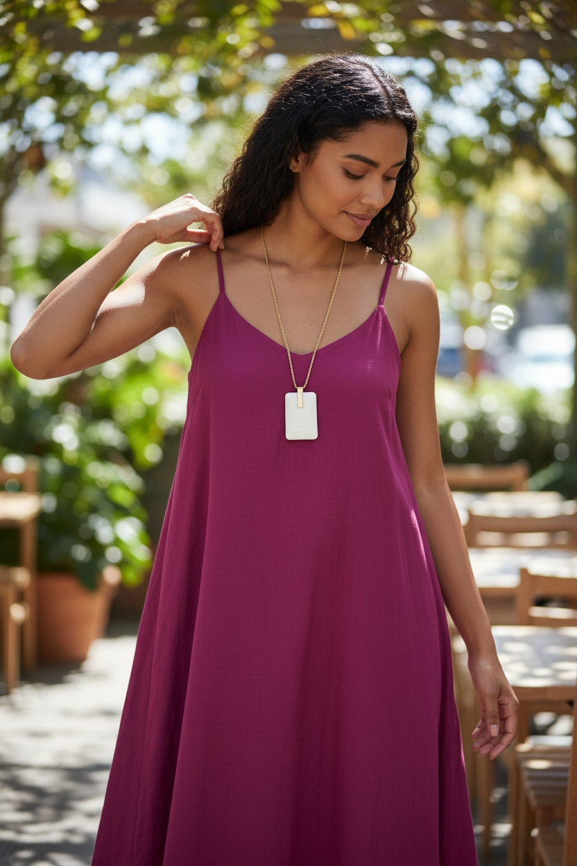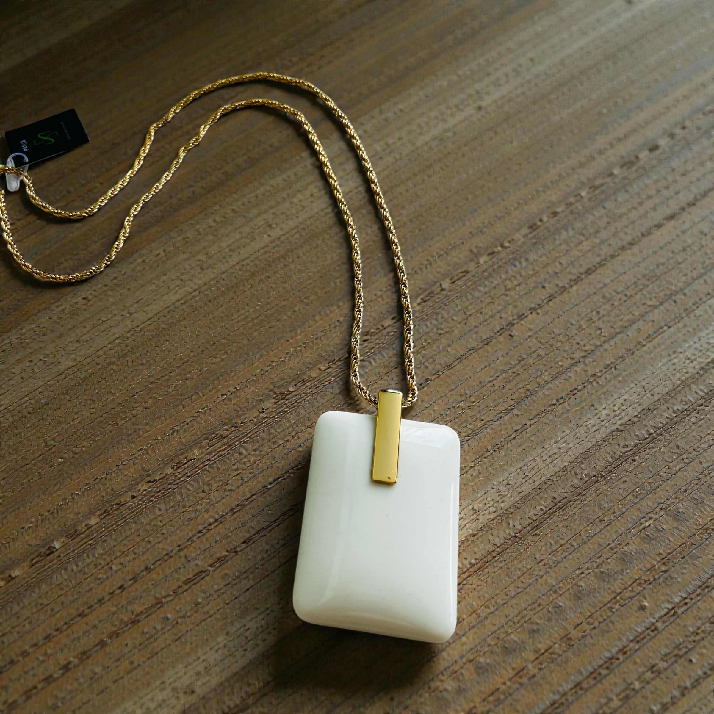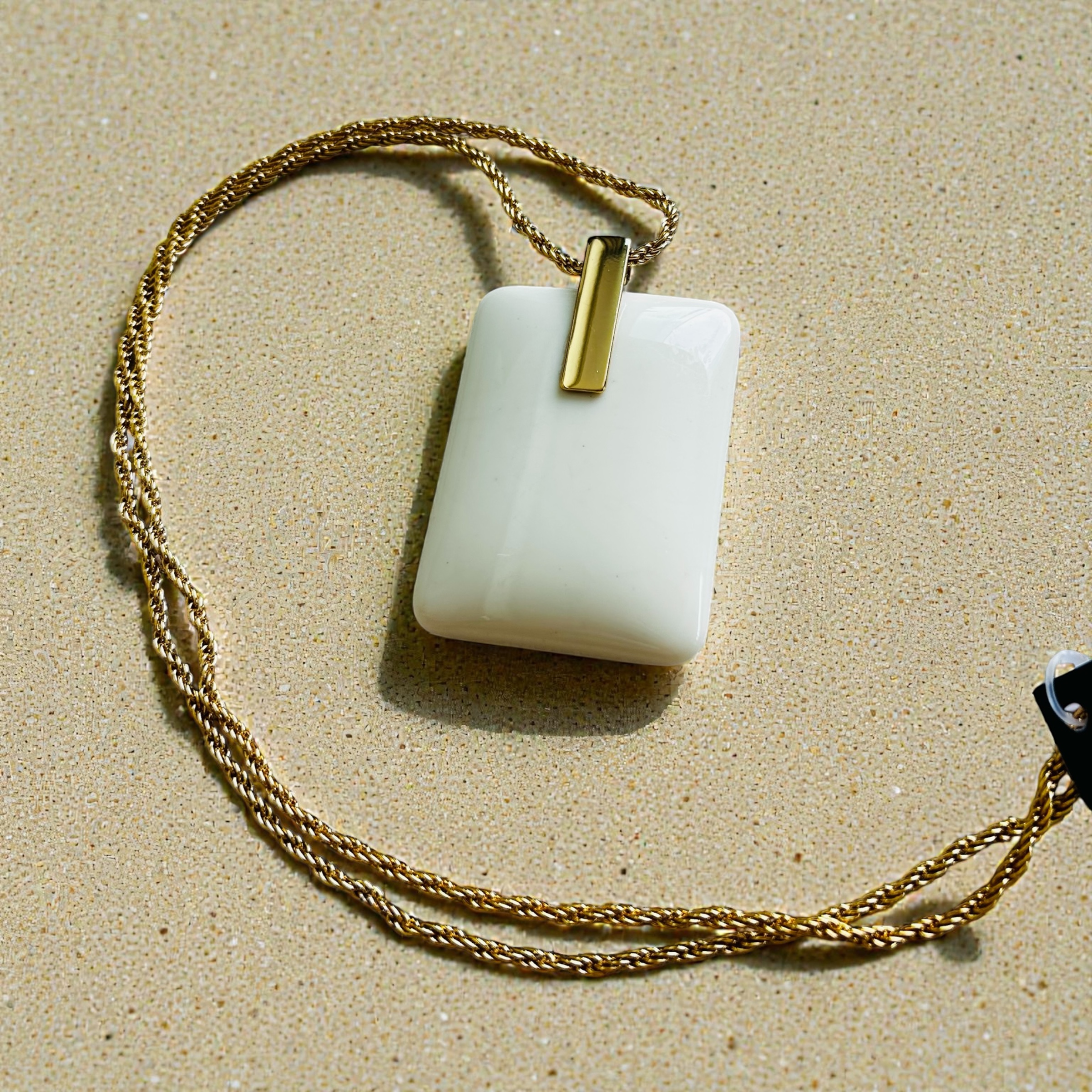 Colar longo em corrente dourada e pingente off withe.