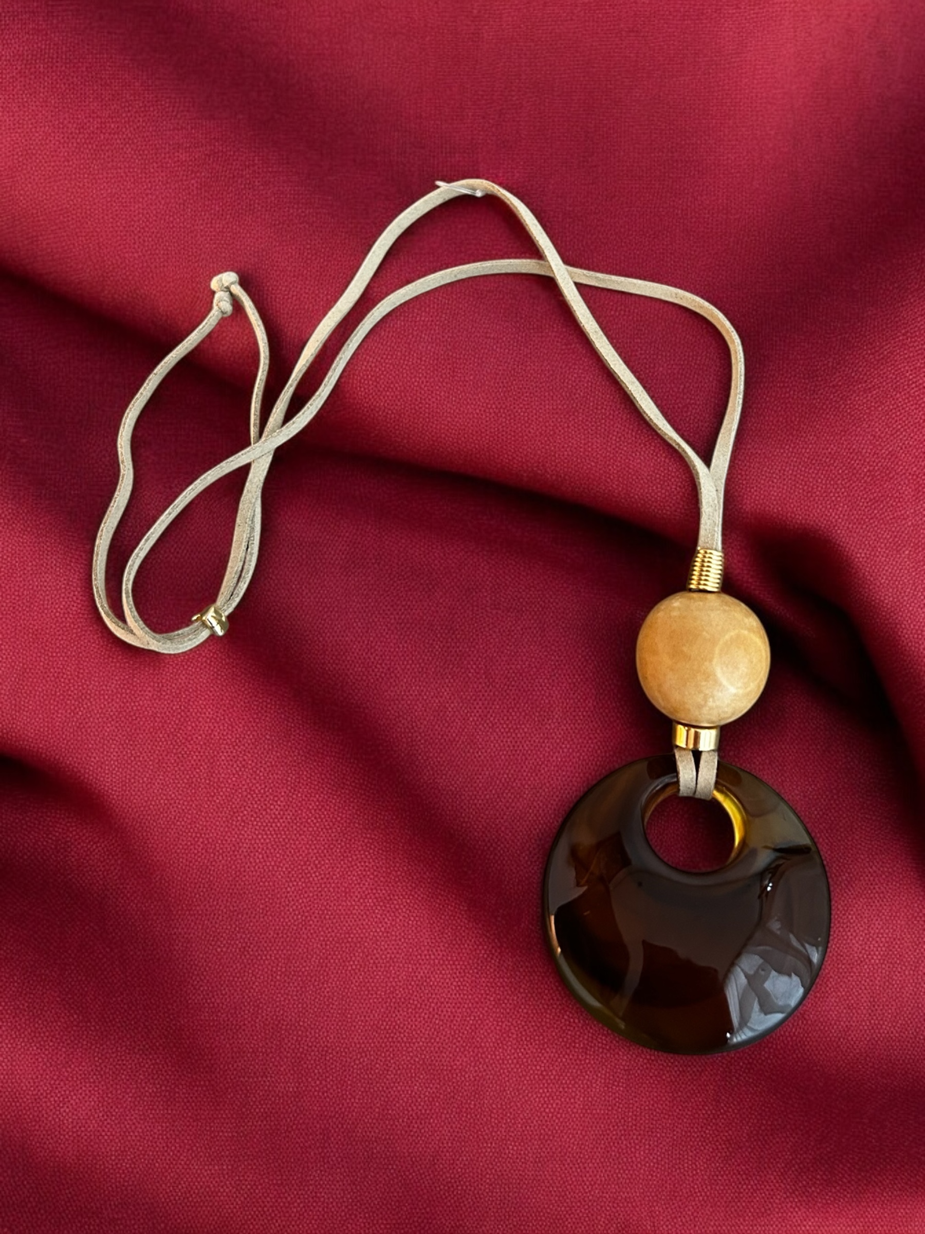 Colar longo de camurça com pingentes de resinas
