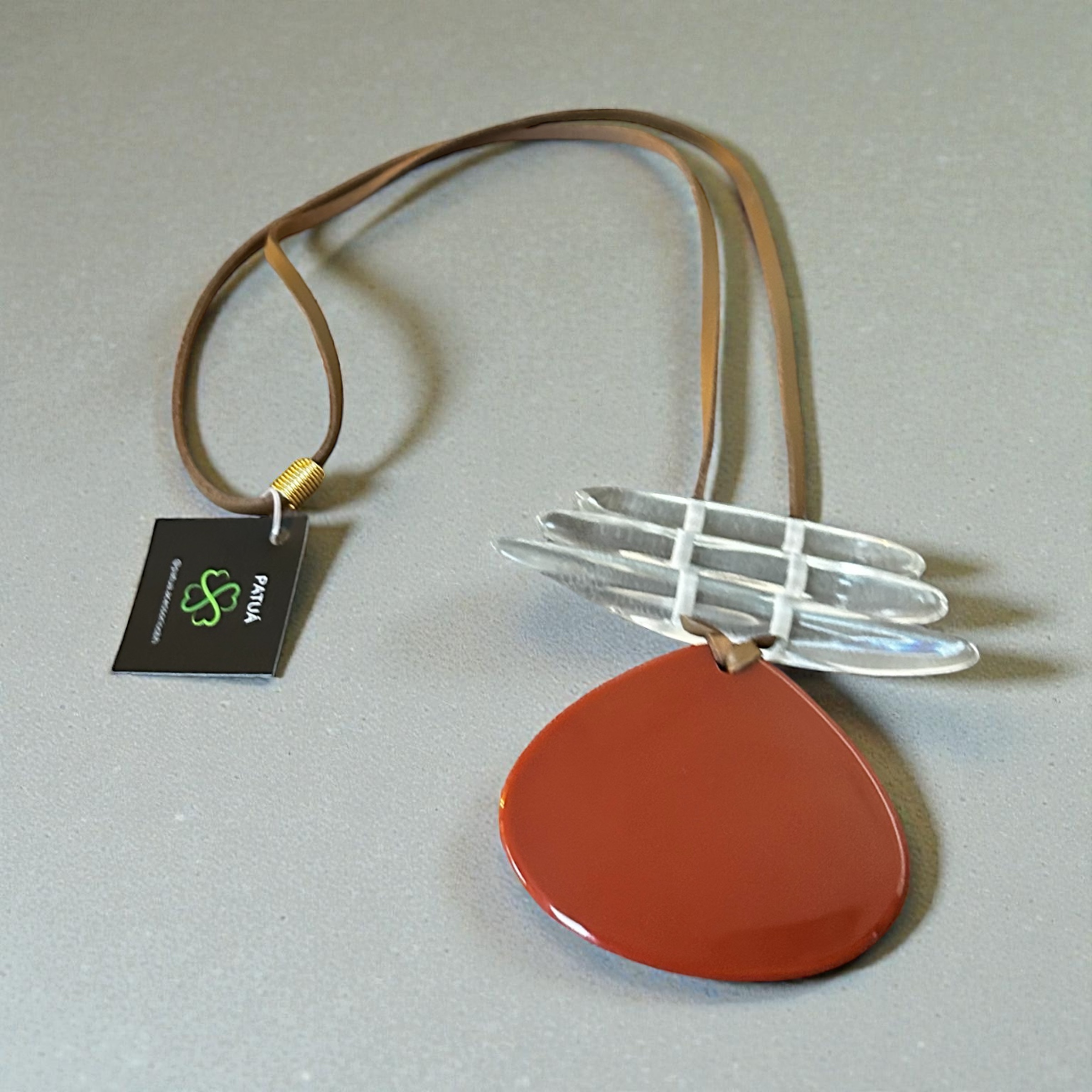 Colar longo em fio de couro e pingente em resina