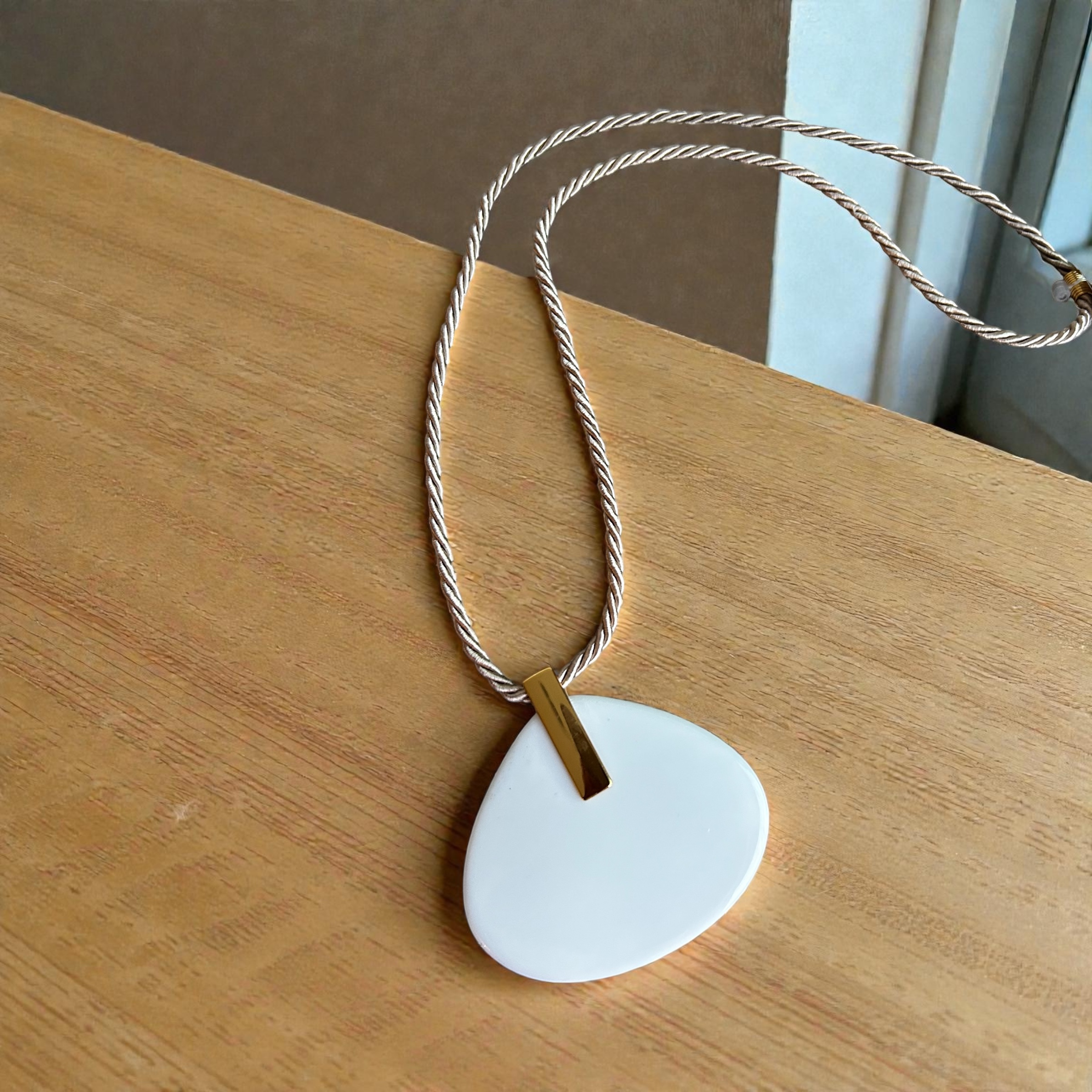 Colar longo de cordão São Francisco com pingente em resina