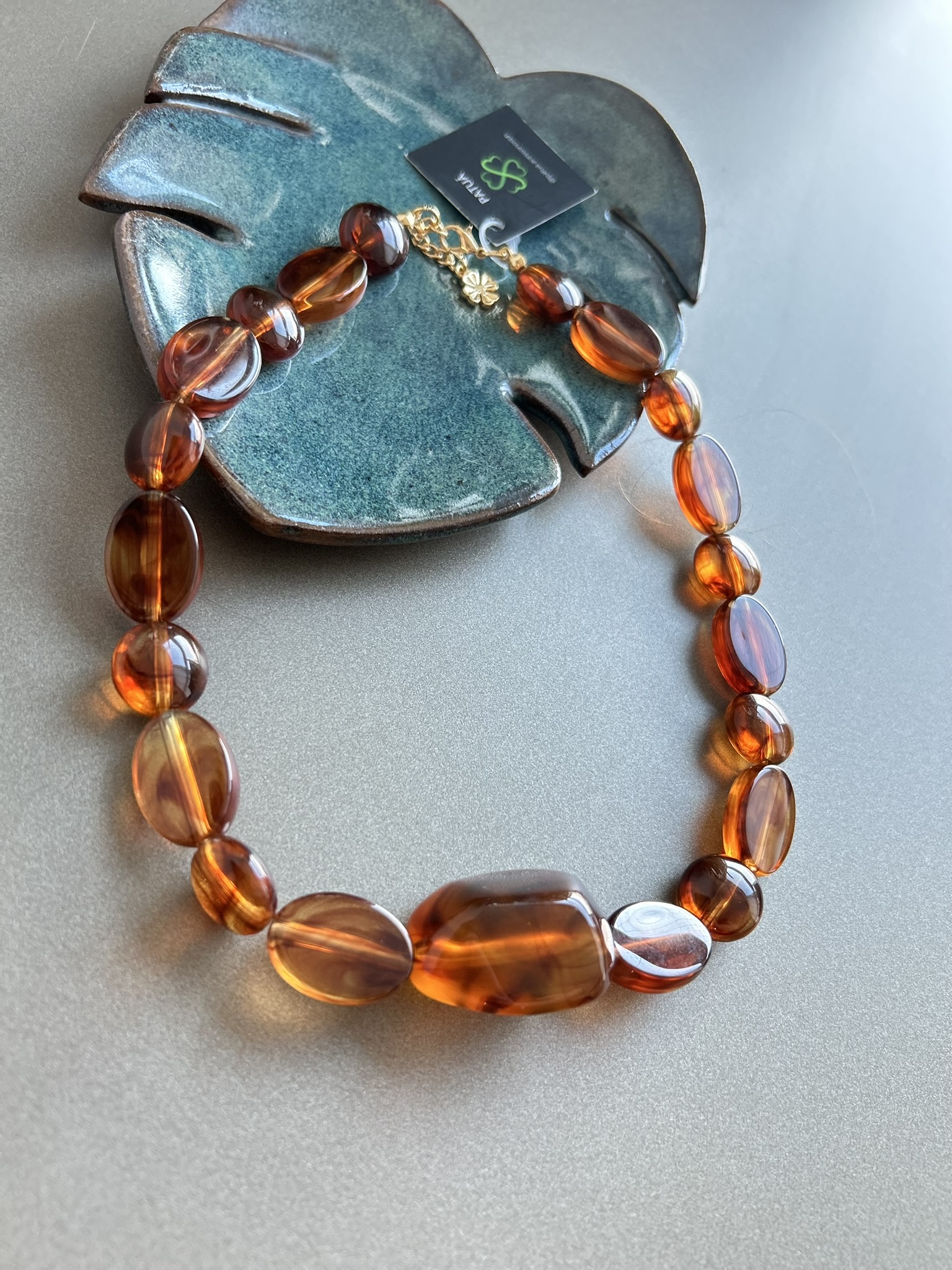 Colar curto em resinas na cor tartaruga.