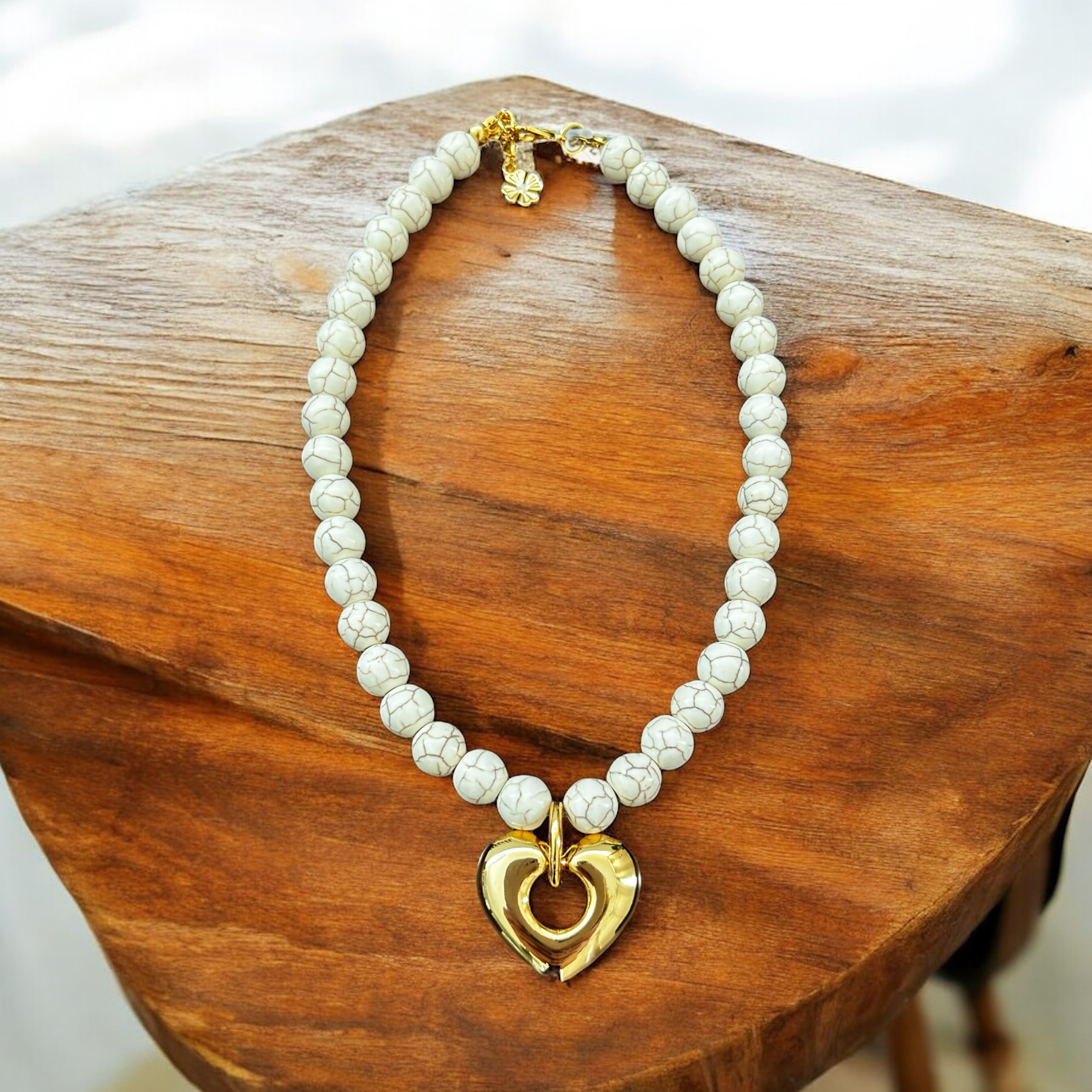 Colar curto com pedras naturais e pingente