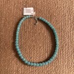 Colar curto em esferas de vidro azul clara, acabamento em metal prateado (com extensor)