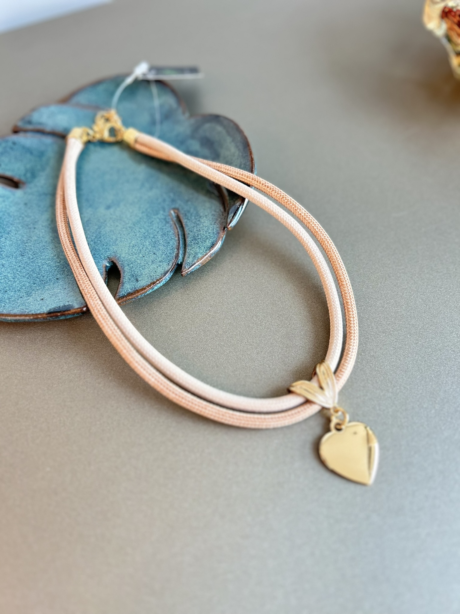 Colar curto em cordão encerado na cor off wite e pingente em resina.
