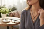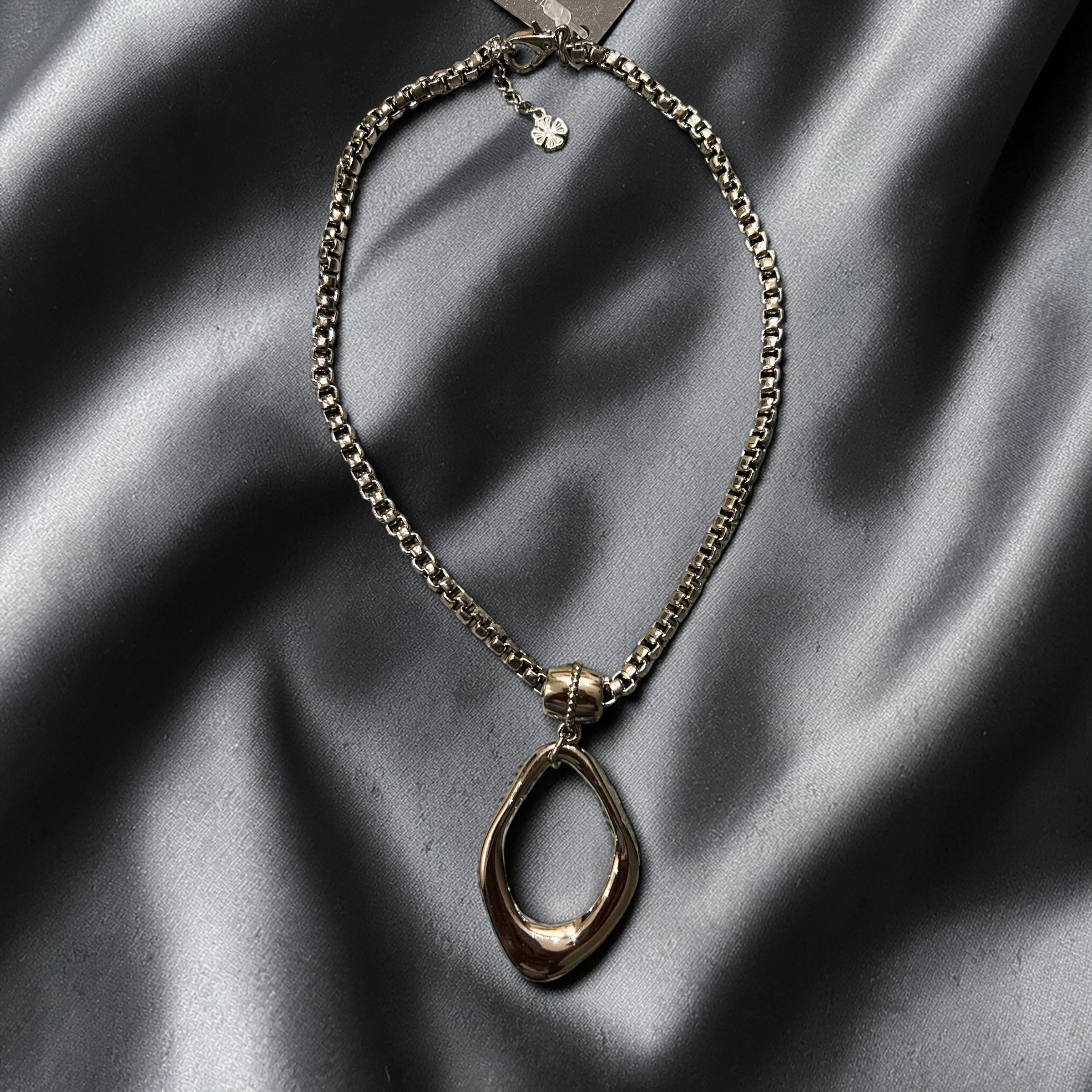 Colar curto em metal prateado, com pingente orgânico (com extensor)