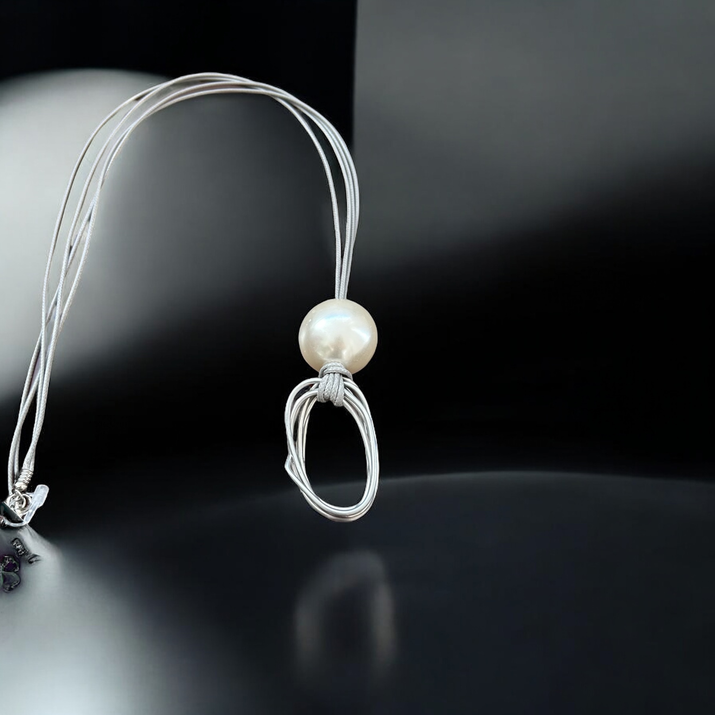 Cola longo em cordão encerado com pingente em metal e perola