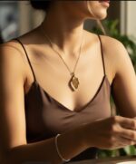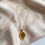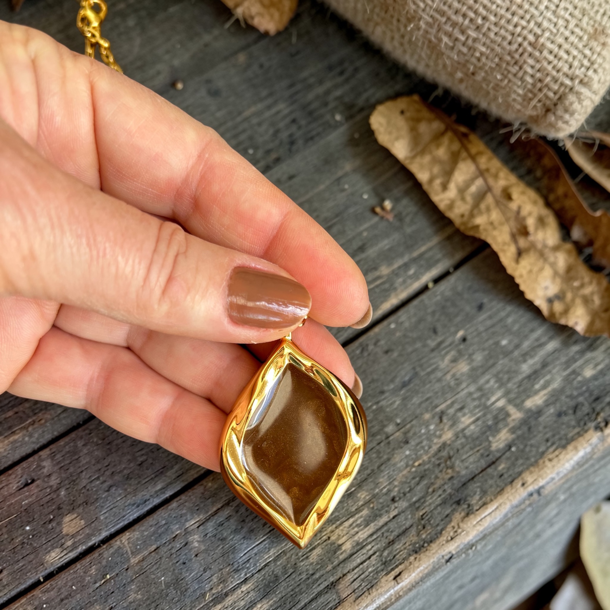 Colar curto de corrente dourada com pingente dourado e marrom