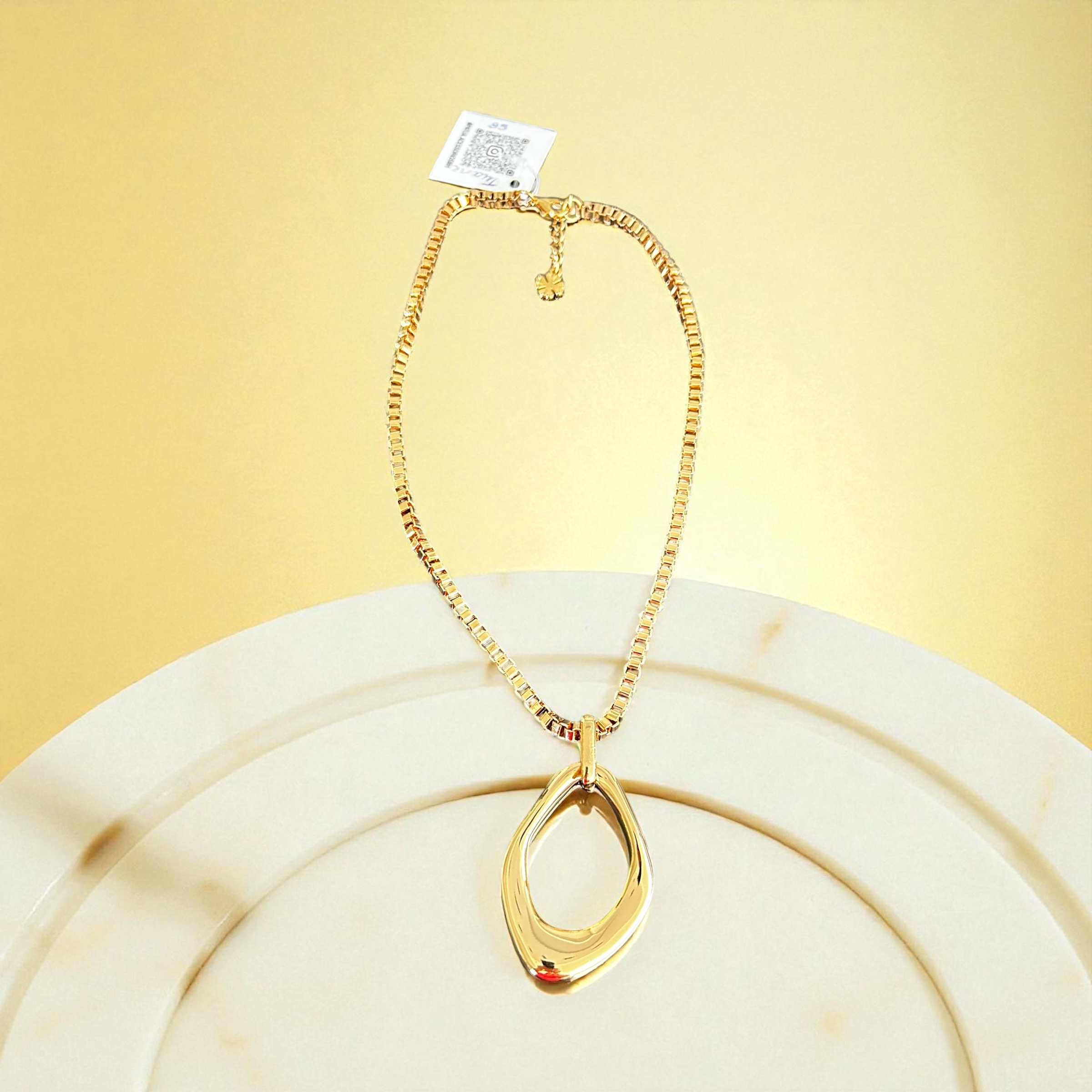 Colar curto em corrente dourada e pingente em formato orgânico.