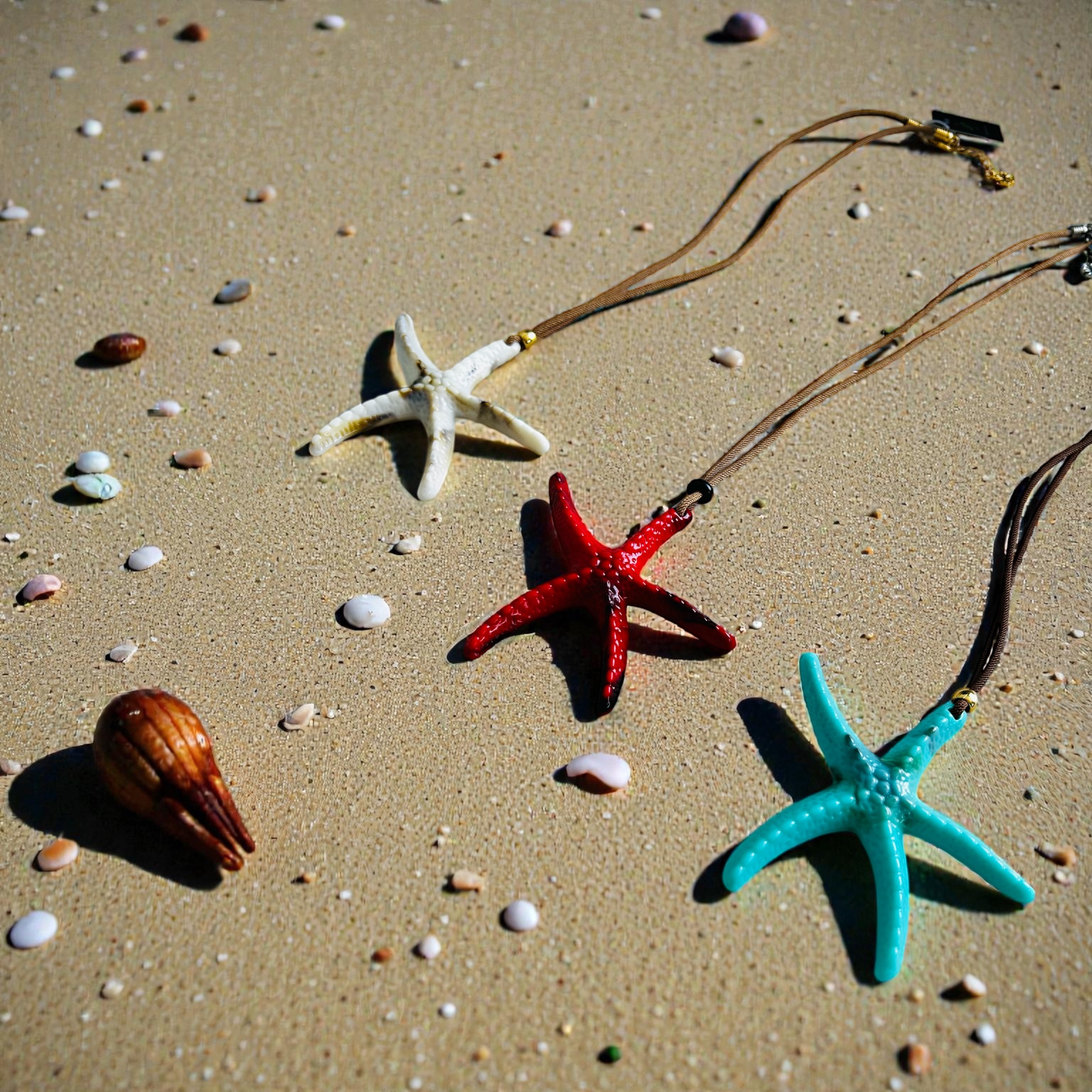 Colar em fio encerado e pingente em resina nas cores bege, azul e vermelho.